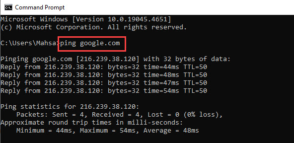 این دستور تأخیر شما به سرورهای گوگل را نشان میدهد.